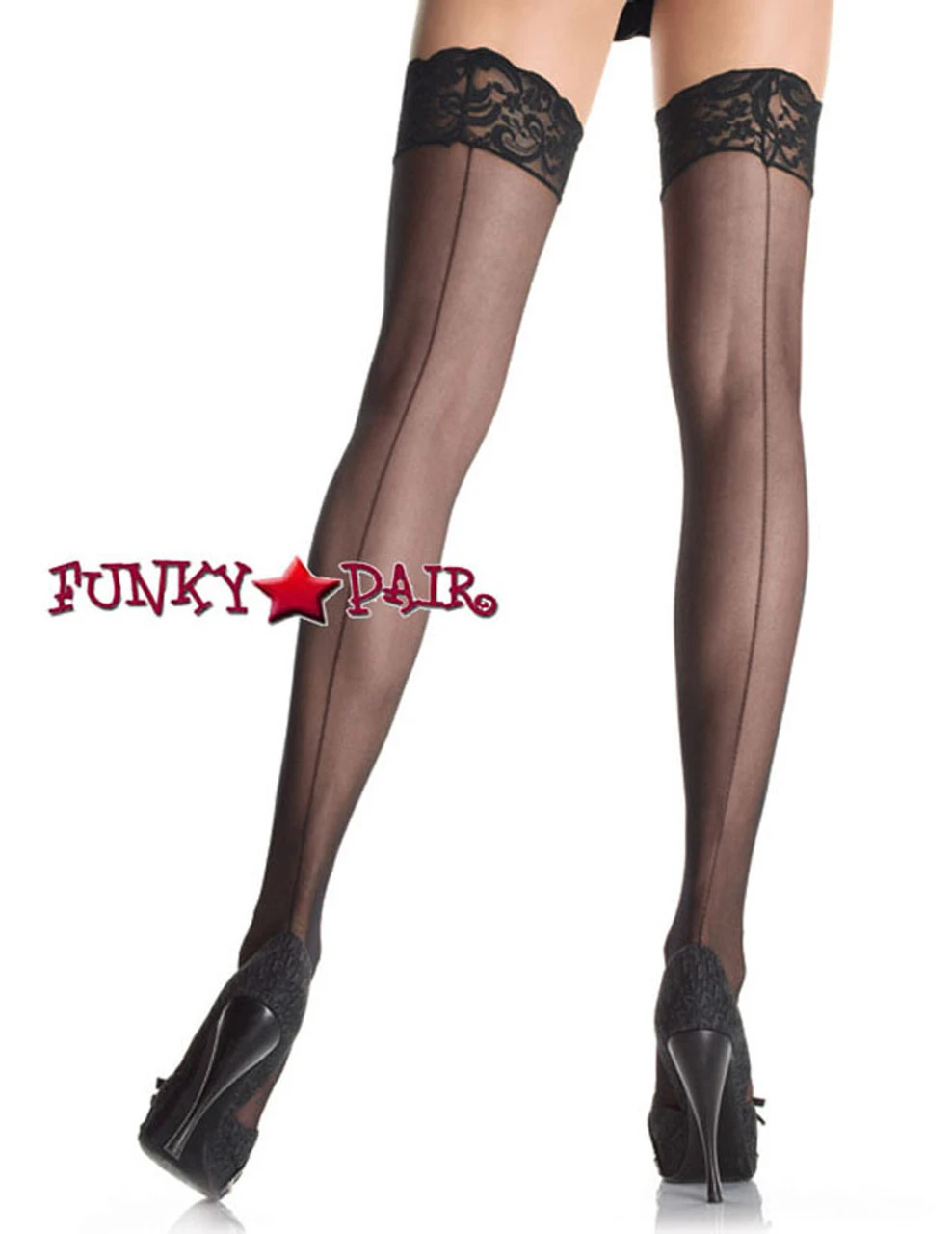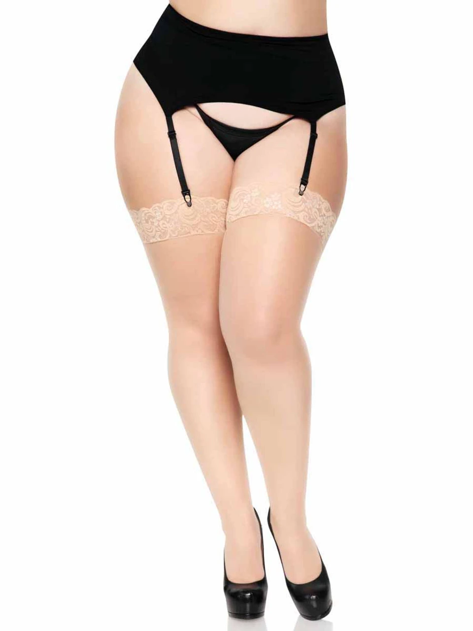 Plus Size Sheer Lace Top Stocking With Backseam.