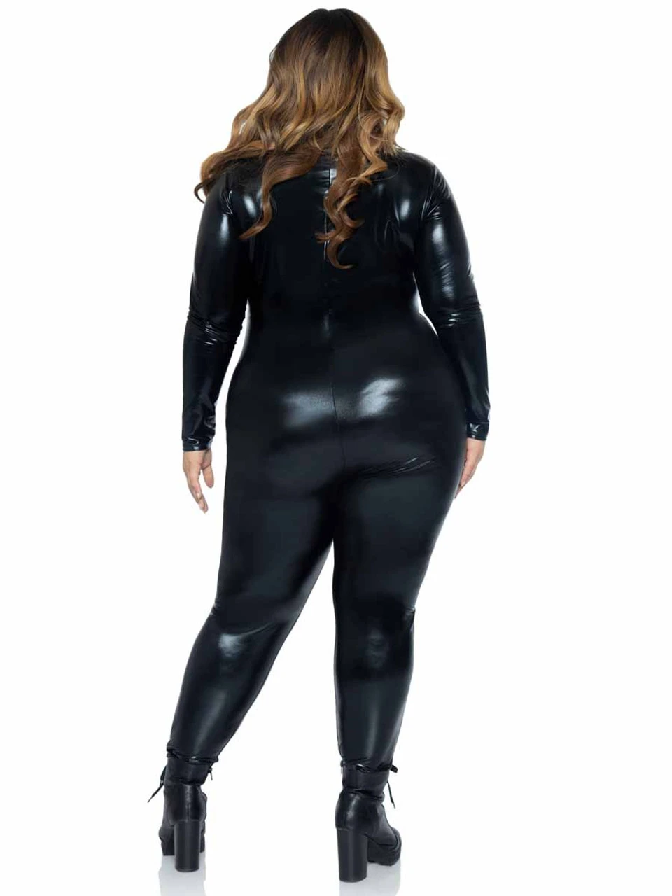 LA-85047X, Plus Size Wet Look Zipper Catsuit By Leg Avenue