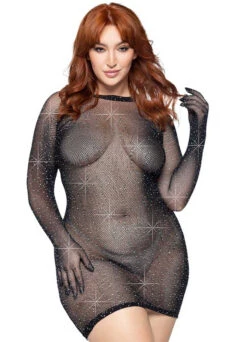 LA86124X, Plus Size Rhinestone Gloved Mini Dress By Leg Avenue