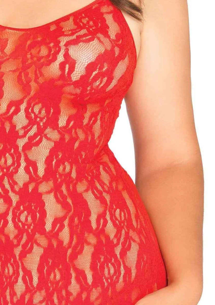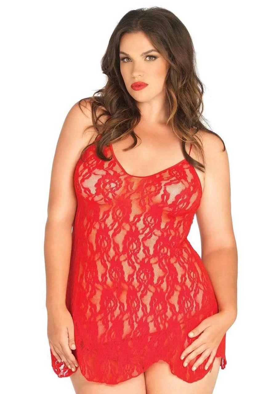 Plus Size Rose lace flared chemise with G-string.