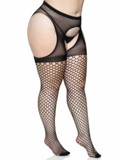 LA-1953X, Plus Size Oval Net Suspender Pantyhose By Leg Avenue