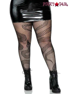 LA-1951X, Plus Size Micro Net Strappy Waist Tights By Leg Avenue