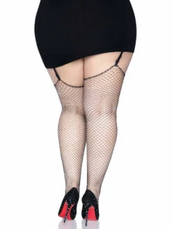 LA-1605X, Plus Size Rhinestone Fishnet Stockings With Attached Garter By Leg Avenue