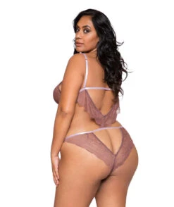STM-11045X, Plus Size Eyelash Lace And Satin Netting Chemise Set