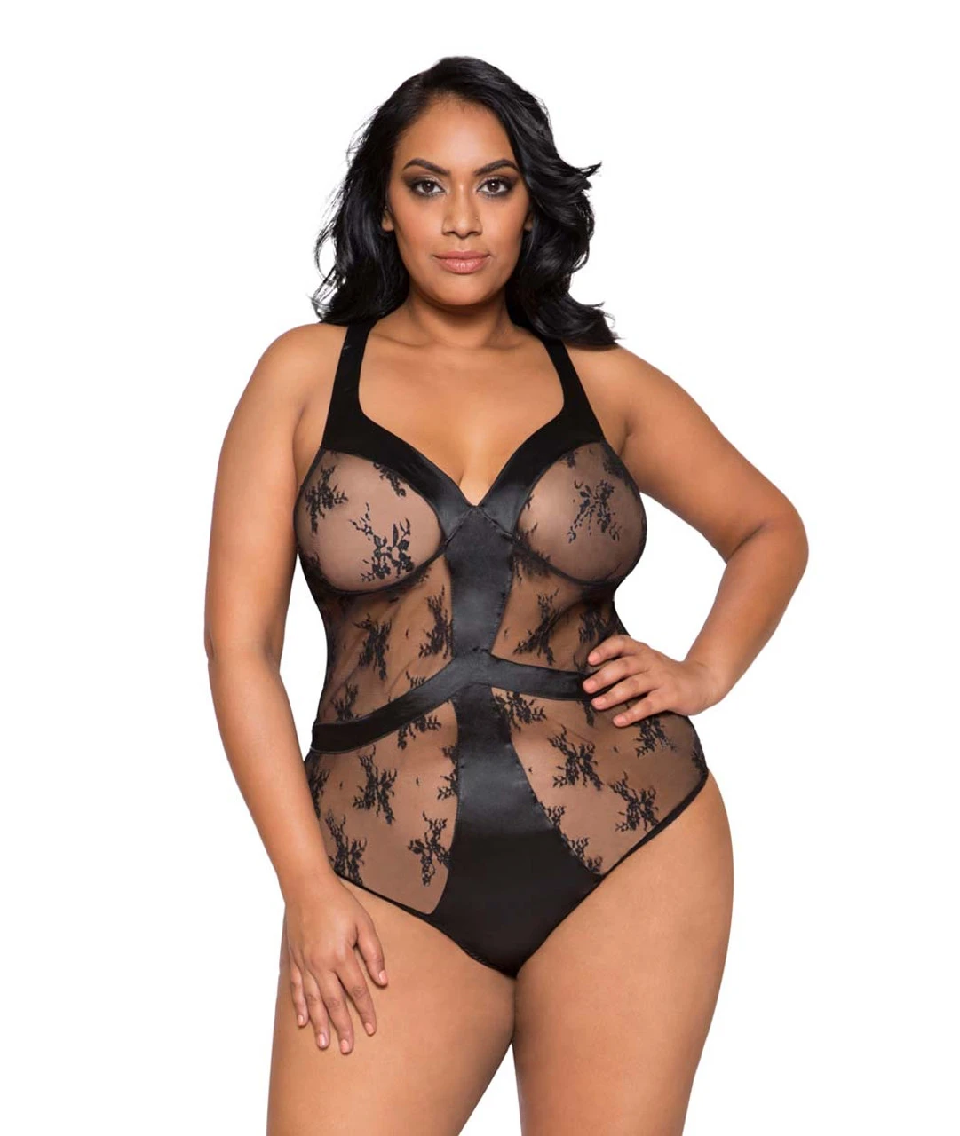 Roma LI259X, Satin And Lace Contrast Bodysuit