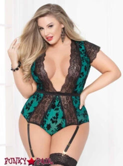STM-10940X, Plus Size Flocked Mesh And Lace Teddy | Seven ’til Midnight